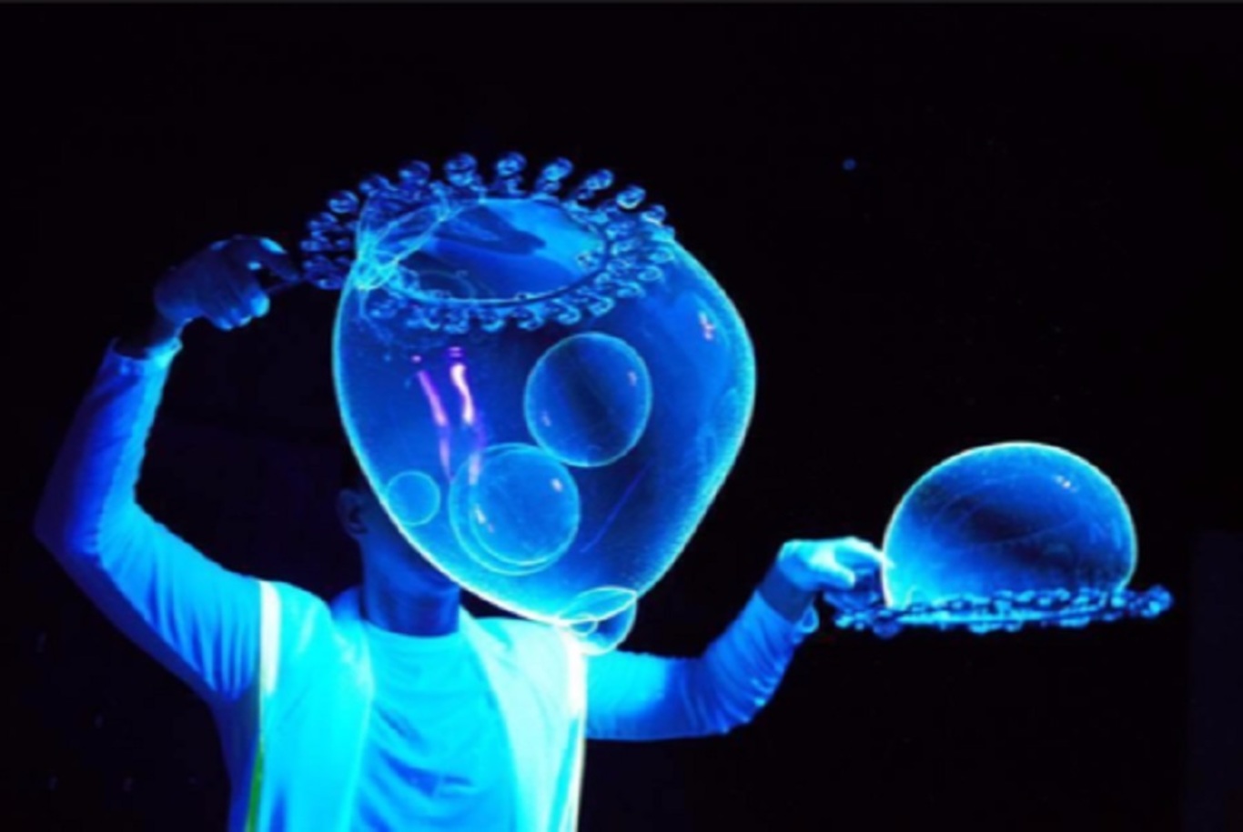 +7 (499) 322-29-40Неоновое Шоу Мыльных Пузырей - это потрясающая новинка в мире мыльных пузырей - пузыри, которые светятся в темноте! Это настоящее волшебство! Неоновое Шоу Мыльных Пузырей сможет поразить даже самого искушенного зрителя! Поверьте, это шоу не просто станет изюминкой Вашего праздника, оно сделает Ваш праздник по-настоящему уникальным!